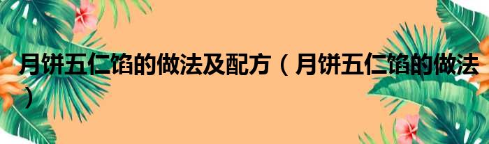 你们好,最近小活发现有诸多的小伙伴们对于月饼五仁馅的做法及配方,月饼五仁馅的做法这个问题都颇为感兴趣的,今天小活为大家梳理了下,一起往下看看吧。