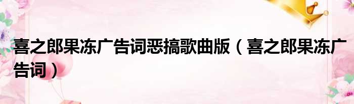 大家好,小活来为大家解答以上的问题。喜之郎果冻广告词恶搞歌曲版,喜之郎果冻广告词这个很多人还不知道,现在让我们一起来看看吧!