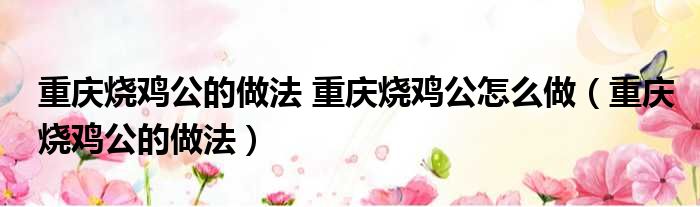 以上就是重庆烧鸡公的做法这篇文章的一些介绍,希望对大家有所帮助。